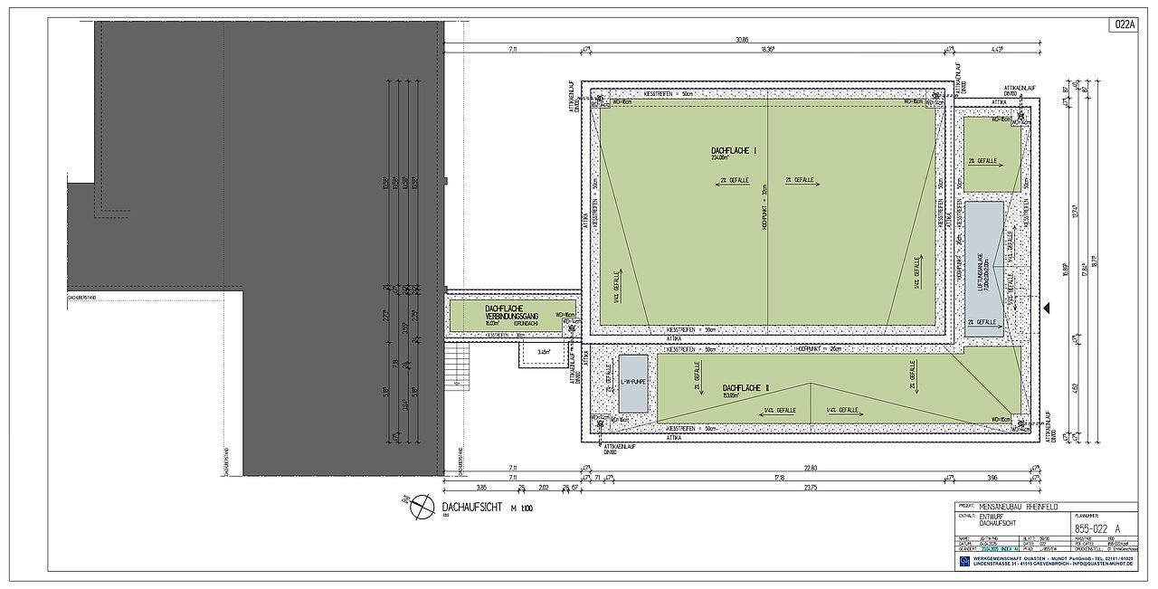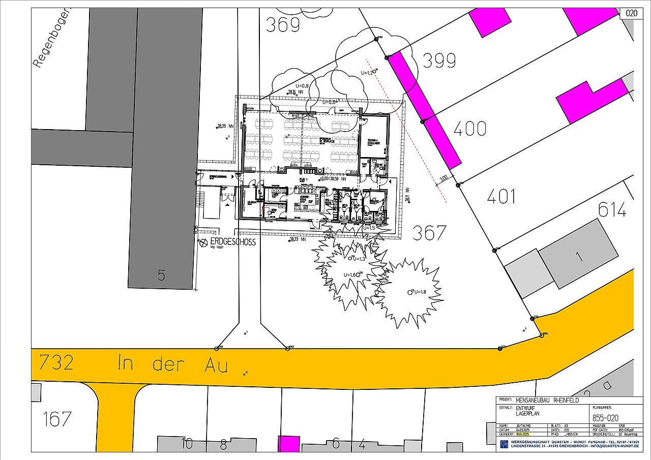 Die Regenbogenschule in Dormagen erhält eine moderne, nachhaltige und funktionale Mensa, die den Bedürfnissen der Schulgemeinschaft gerecht wird und gleichzeitig einen wichtigen Beitrag zur CO2-Reduktion (Gründach, PV-Anlage nebst Speicher) leistet. Geplant ist der Bau einer eingeschossigen Mensa, die neben einem großzügigen Speiseraum für etwa 220 Schülerinnen und Schüler auch eine Ausgabeküche und weitere Nebenräume umfasst. Die Mensa wird im südlichen Bereich des Schulgeländes an der Straße „In der Au“ errichtet und nahtlos an das bestehende Hauptgebäude angebunden.